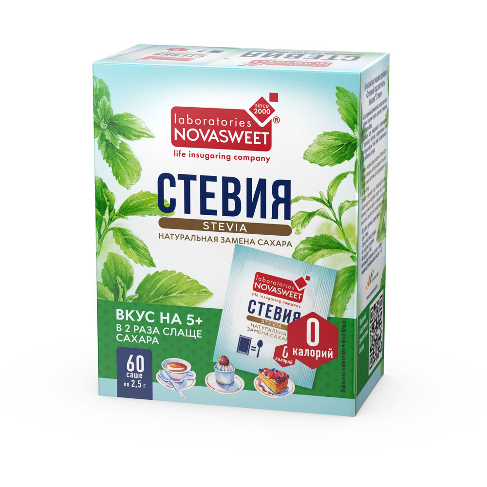 Stevia. Натуральный заменитель сахара, 60 саше по 2,5г
